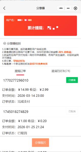 - 每产生一笔会员付费,你直接拿20%佣金